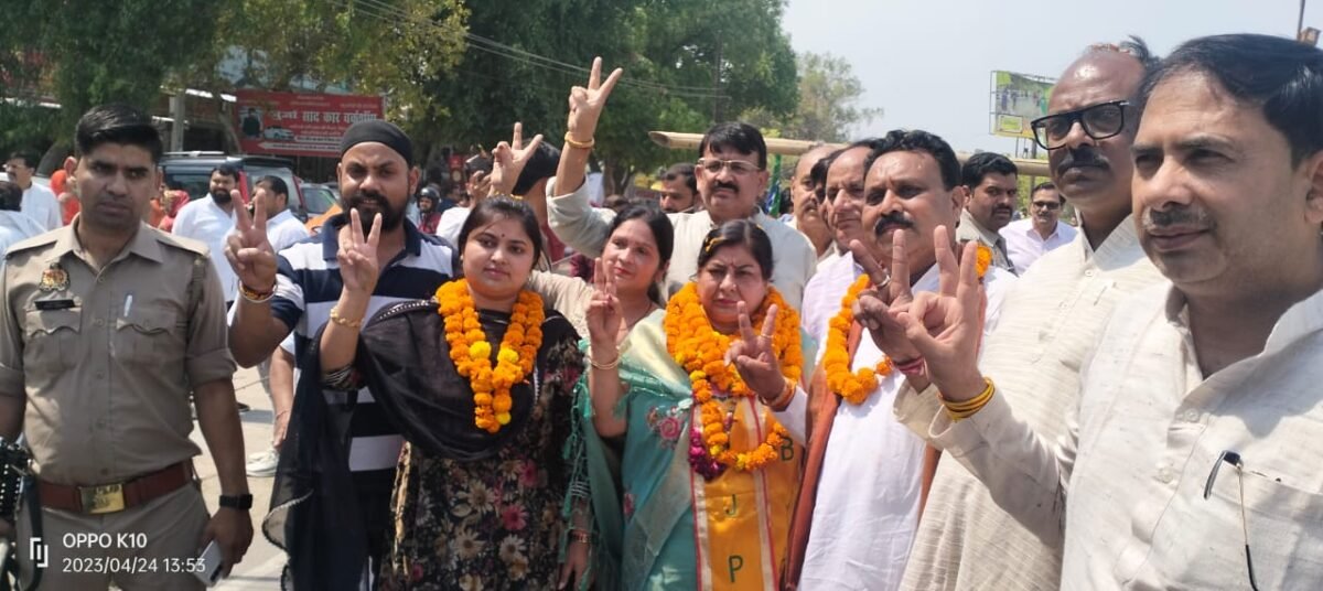 देखें वीडियो Share on:WhatsAppPost navigationखुर्जा । खुर्जा विधायक के साथ नामांकन करने पहुंची भाजपा चेयरमैन प्रत्याशी अंजना सिंघल।