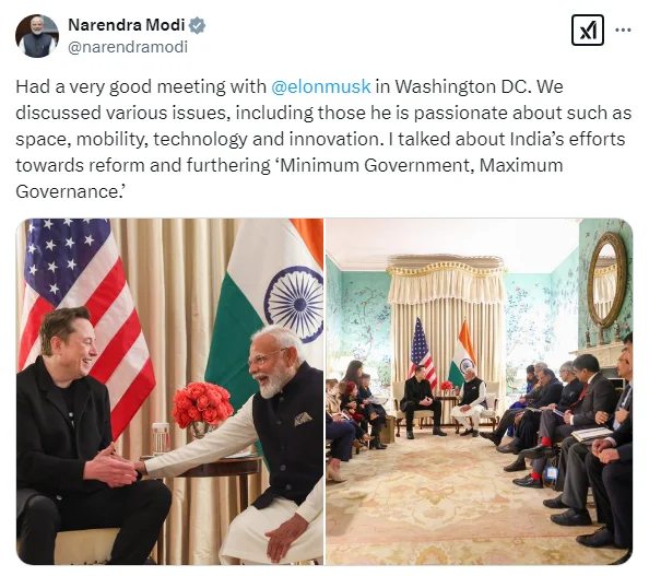 नई दिल्ली, 14 फरवरी: प्रधानमंत्री नरेंद्र मोदी ने वाशिंगटन डीसी में टेस्ला और स्पेसएक्स के सीईओ एलन मस्क से मुलाकात की। इस बैठक में अंतरिक्ष, गतिशीलता और प्रौद्योगिकी जैसे महत्वपूर्ण…